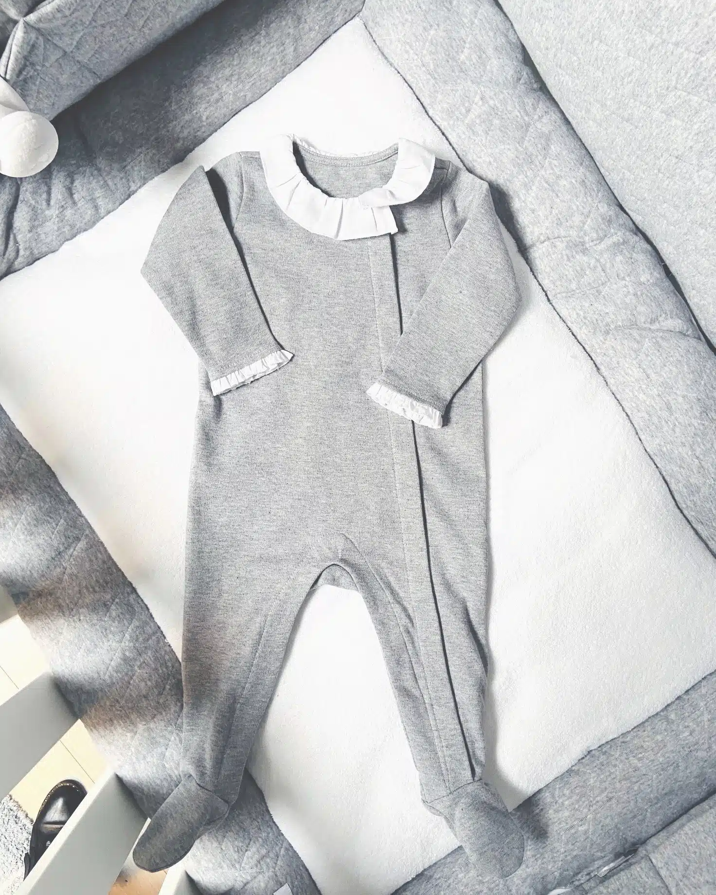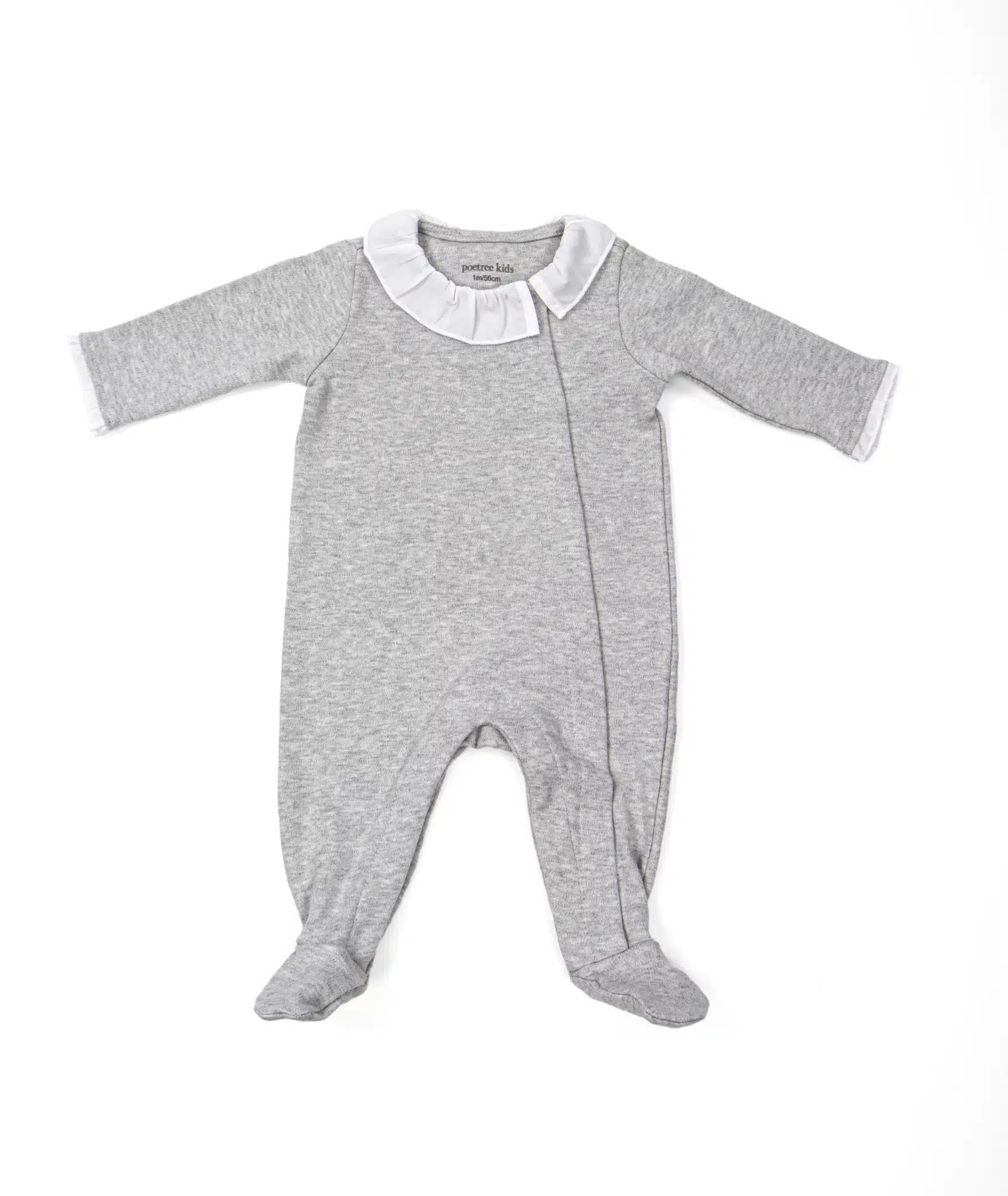 Prachtig boxpakje van het mooie Poetree! Het boxpakje is roze met een lief witte roeselkraagje, deze roesels zitten ook aan de mouwtjes. Aan de voorkant zit een schuine sluiting met drukknoopjes. Echt een prachtig pakje voor je kleine meisje!